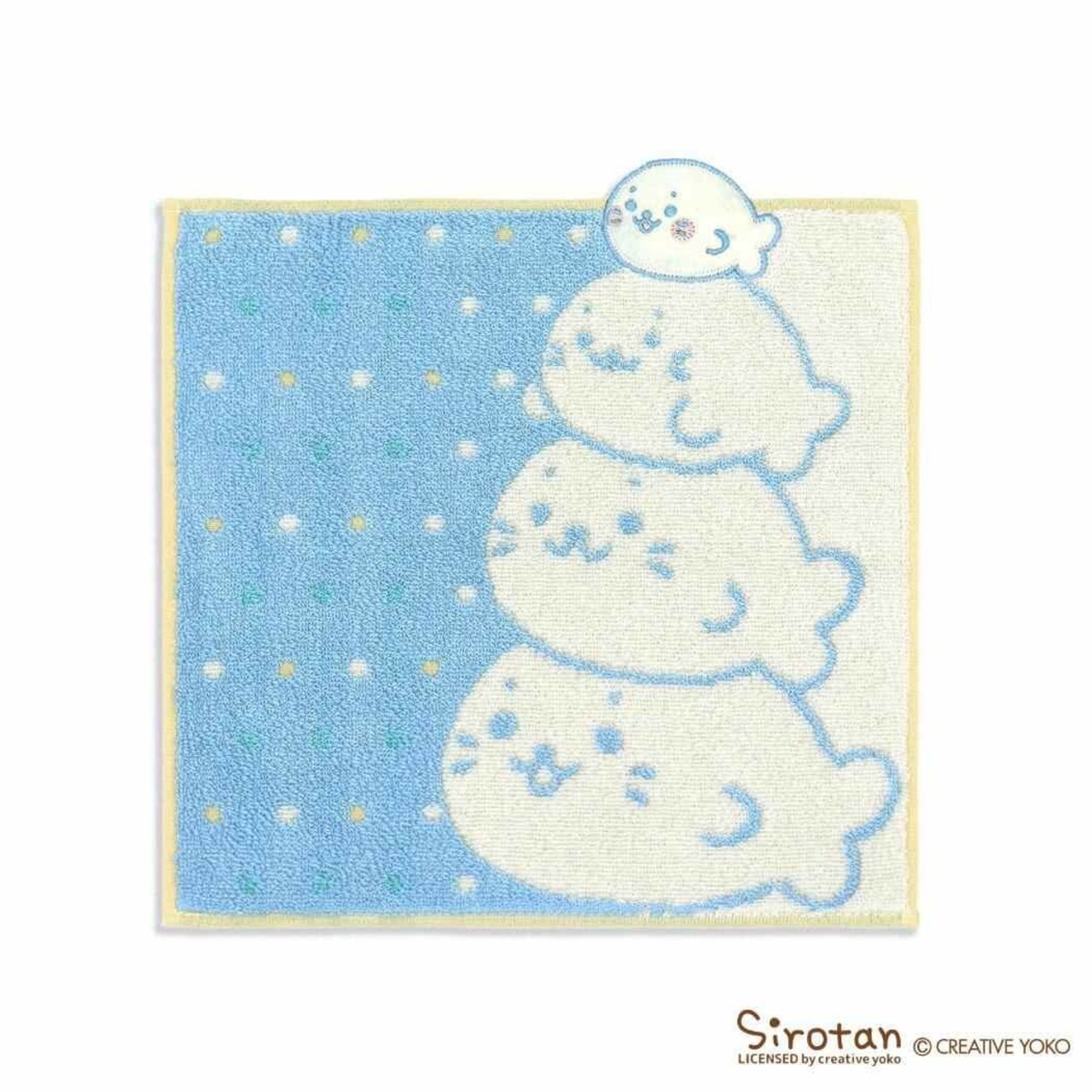 【ハンドタオル】しろたん フルフィーコットン無撚糸タオルハンカチ しろたんタワー ブルー
