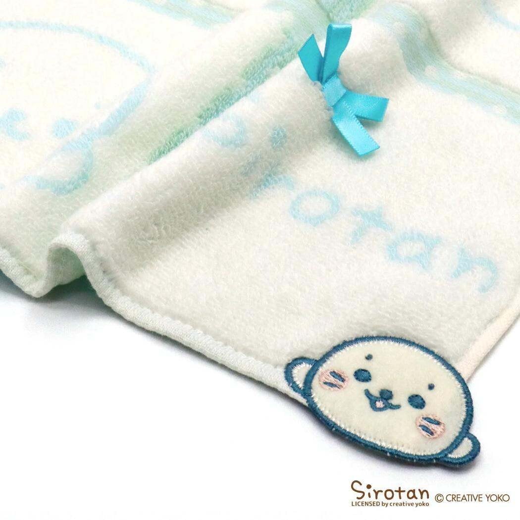 【ハンドタオル】しろたん フルフィーコットン無撚糸タオルハンカチ しろたんとらっこいぬ ブルー