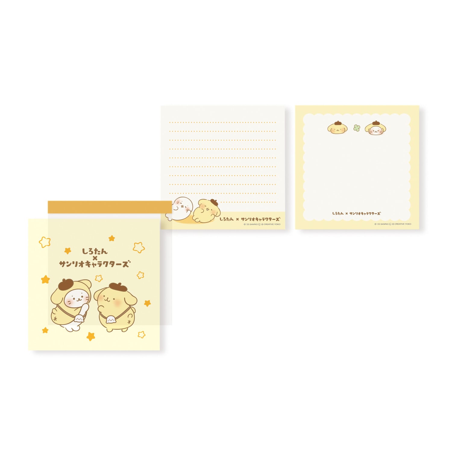 見ているだけで癒される可愛いコラボデザイン!生誕25周年を迎えてなお不動の人気を誇る「しろたん」、そのなごみの雰囲気をそのままにサンリオキャラクターとコラボしました。・使い勝手の良いスクエアタイプ。透明塩ビ表紙のついたしっかりした仕上がり・本文は100枚のボリュームタイプ、可愛い2柄入り(2柄×各50枚)・サンリオキャラクターもしろたんの持つなごみの雰囲気にアレンジ・安心の日本製※スクエアメモ しろたん×サンリオキャラクターズの種類は、シナモロール・マイメロディ・ハローキティ・ポムポムプリン の全4種です※「しろたん」は やまだえま さんがデザインしたクリエイティブヨーコのキャラクターです