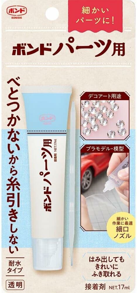 プラモデル・模型などのパーツ固定、ラインストーンの接着、様々なデコレーション用途におすすめのパーツ用ボンドです。デコプリンセス ラインストーン用(KB4874)のパッケージリニューアル商品です。