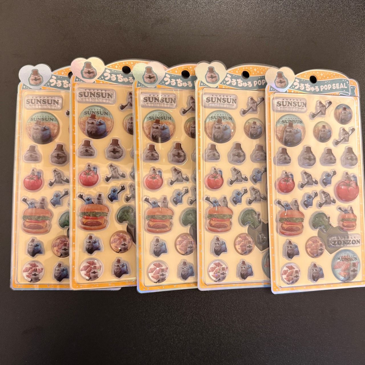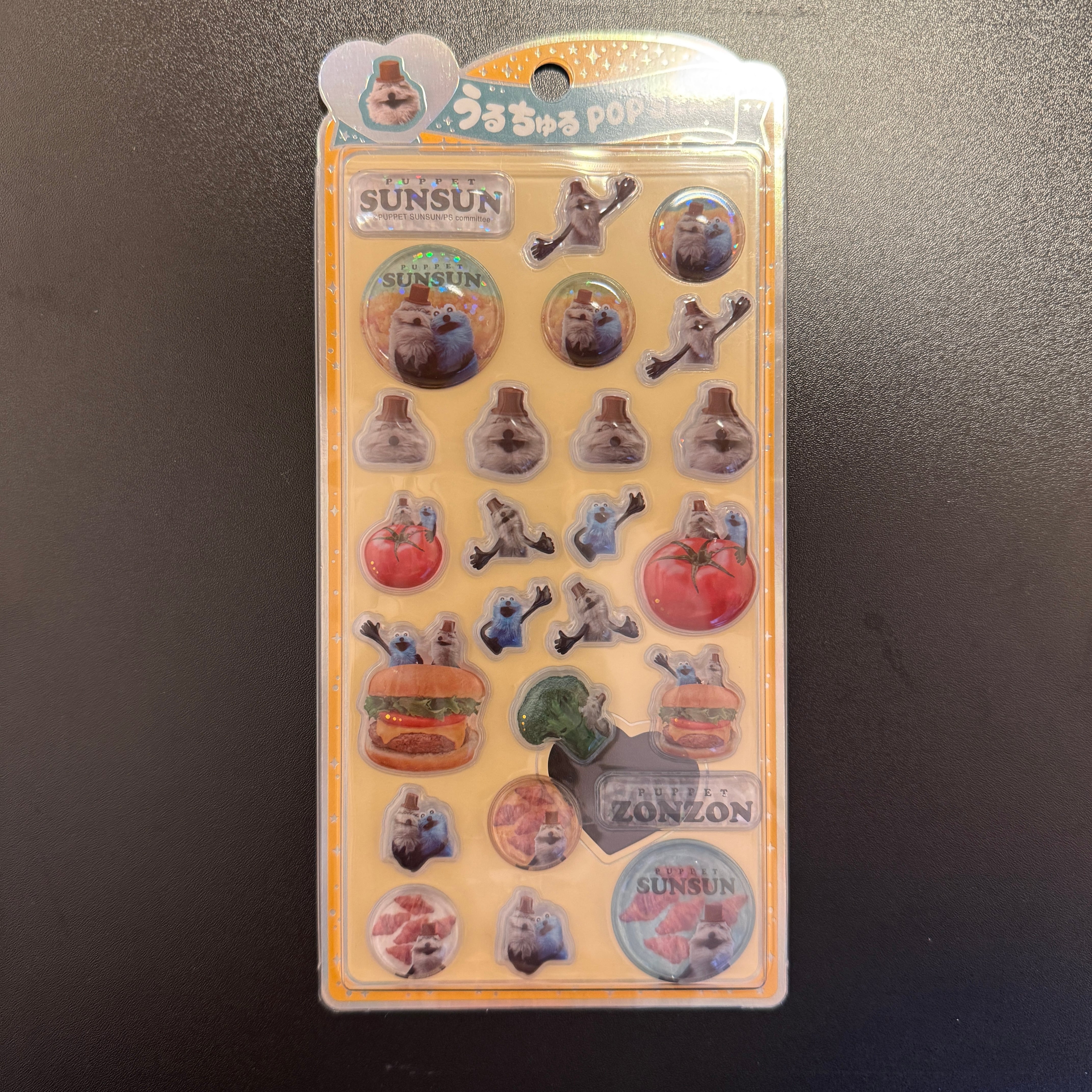PUPPET SUNSUN うるちゅるポップシール スンスン/ゾンゾン5枚セットになります。