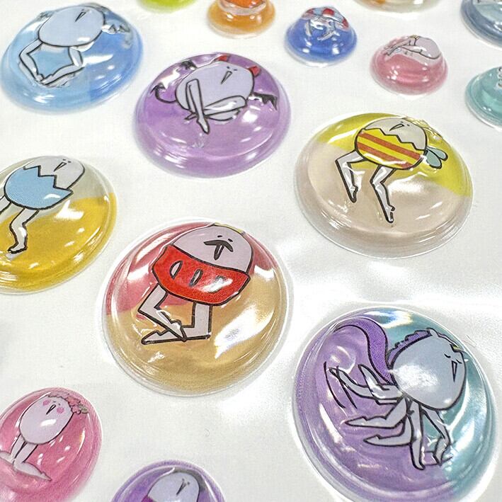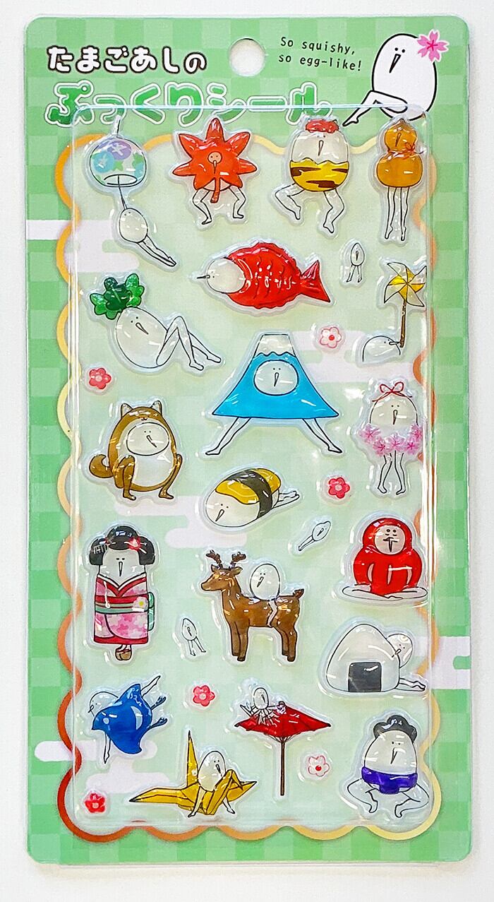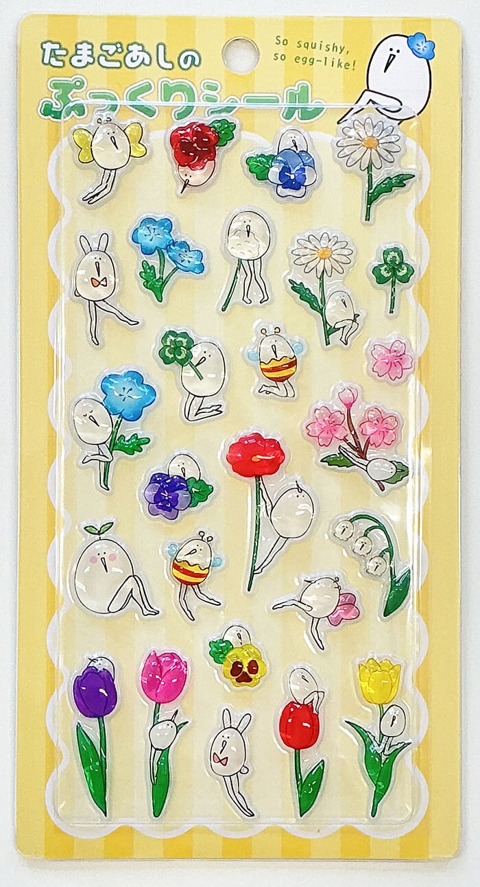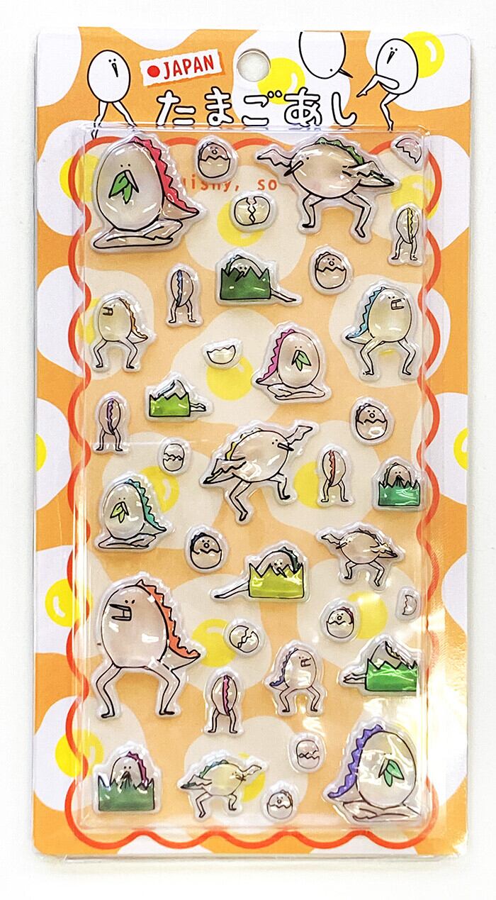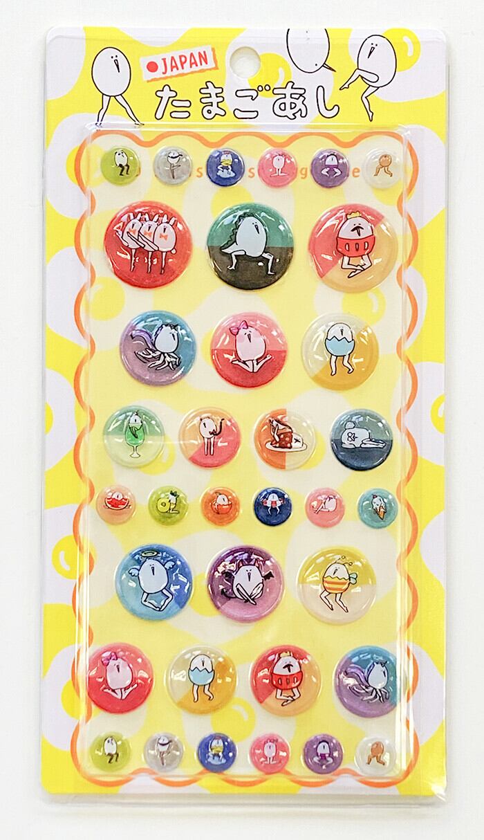 \今大人気のたまごあしシールが再入荷!/人気のぷっくりシールが、たまごあしデザインで登場!ころんとした立体感と、ゆるい表情がなんともいえない可愛さです♪手帳やスマホケース、小物デコにもぴったり◎思わず集めたくなる、今注目のシールシリーズです。
