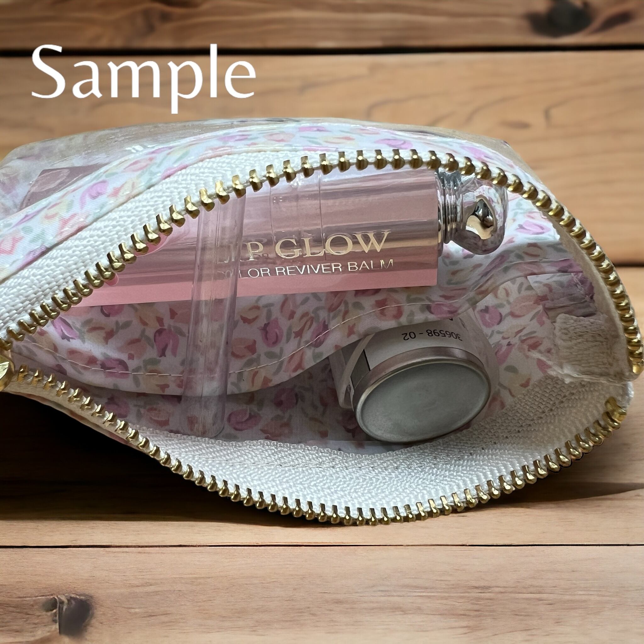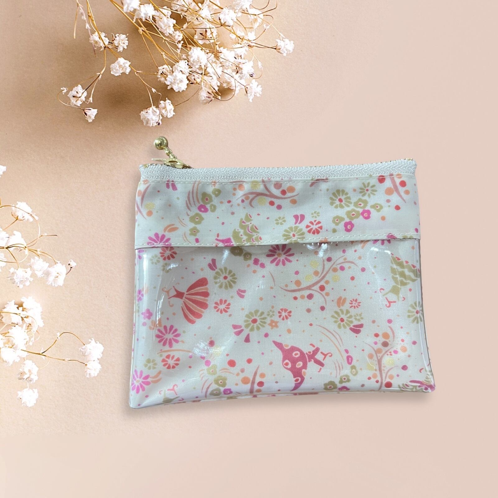 中の柄と表面のラミネート透明シートにより、使い勝手抜群のポーチです。